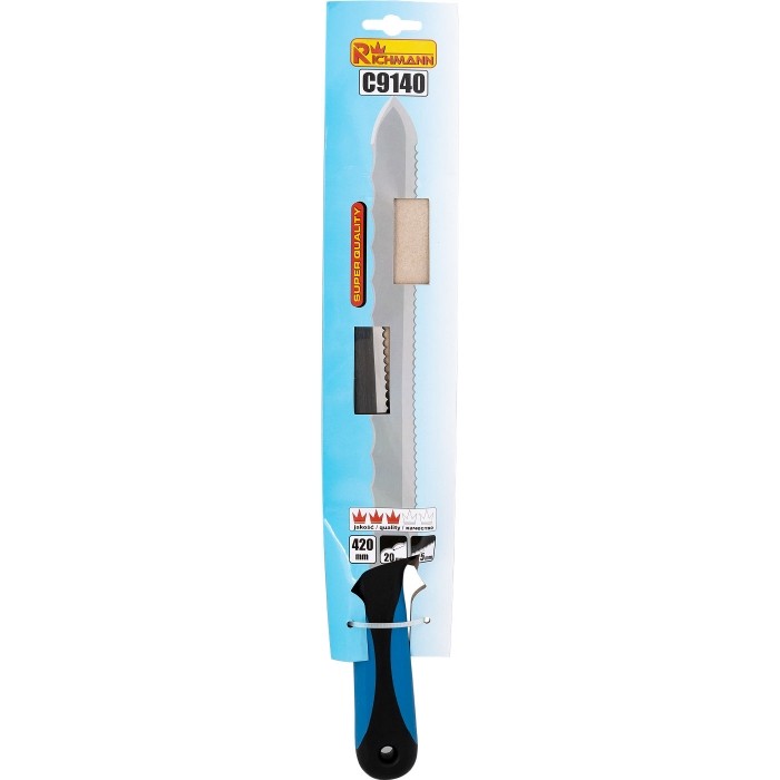 Uniwersalny nóż 2w1 o długości 420 mm do cięcia styropianu i wełny mineralnej.