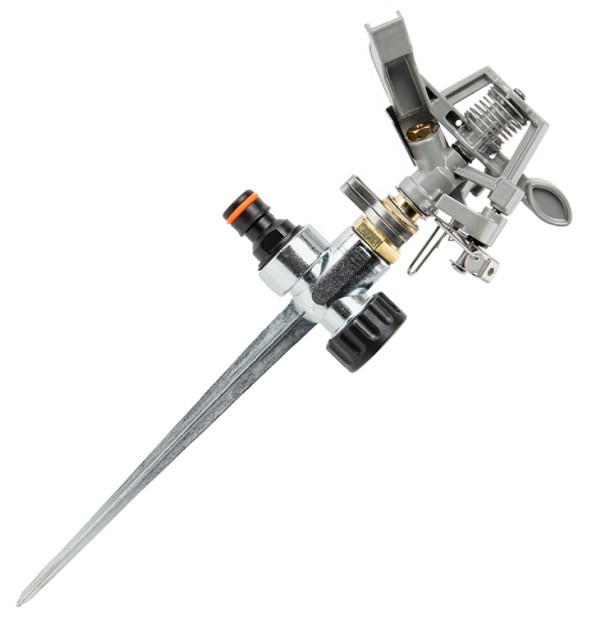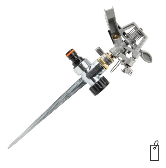 Cechy produktu: • Stabilny kolec • Regulacja obszaru i zasięgu zraszania • Obszar zraszania: 265 m² • Kolec posiada nypel do szybkozłączy • Możliwość szeregowego połączenia z innymi zraszaczami • Rodzaj opakowania: przywieszka