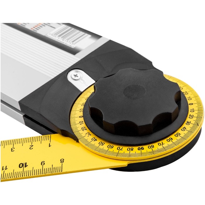 Kątownik ma możliwość ustawienia dowolnego kąta 0° - 90° oraz zablokowania za pomocą pokrętła blokującego.