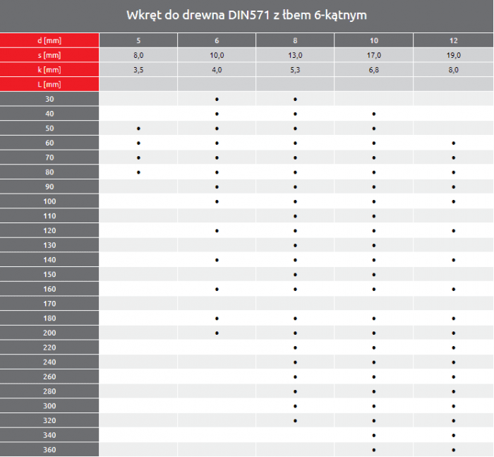 WKRĘT K 12X260 Z ŁBEM SZEŚĆ. DO DREWNA DIN 571 -zdjęcie numer 3