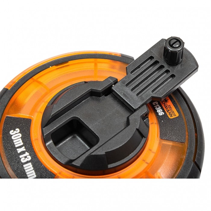 Stalowa miara zwijana o długości 30 m z rozbiegówką.