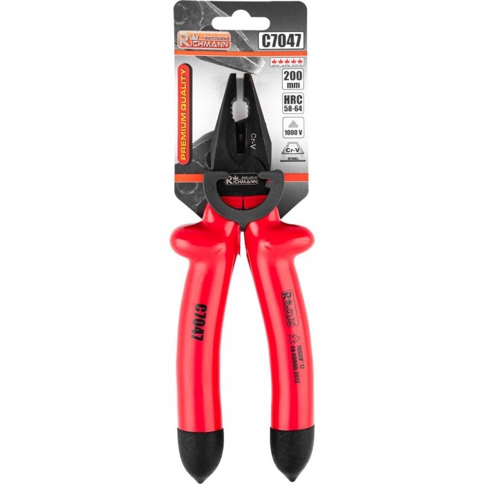 Profesjonalne szczypce uniwersalne, izolowane o długości 200 mm.