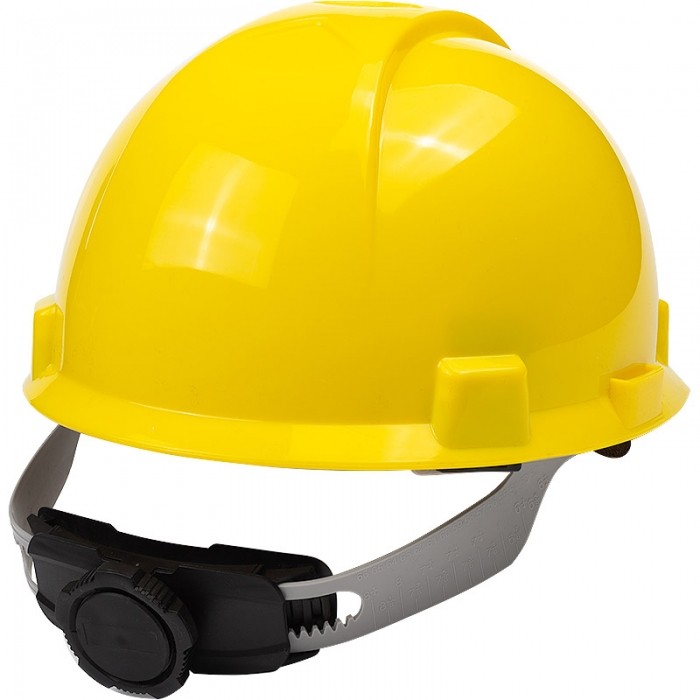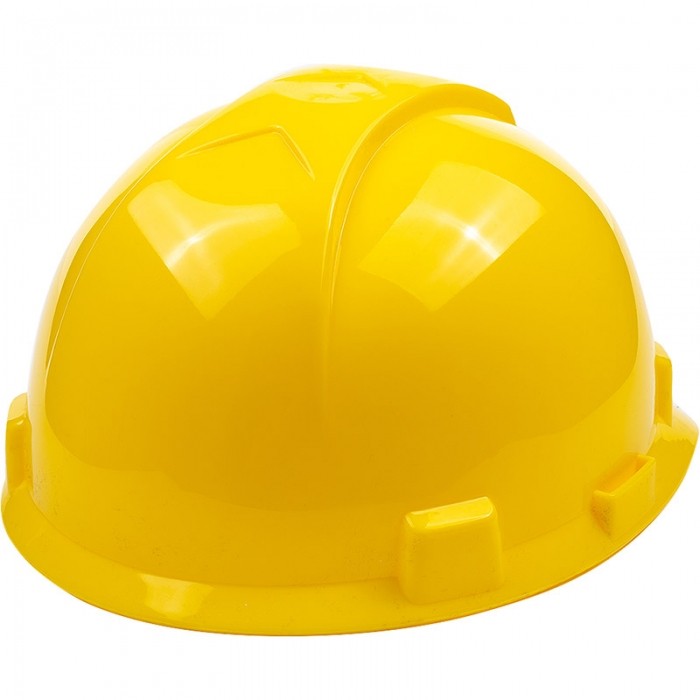 Wysokiej jakości budowlany kask ochronny w kolorze żółtym.