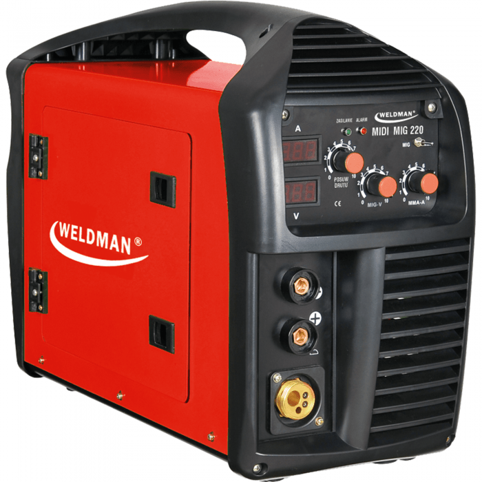 Spawarka Midi Mig 220 cechuje się zasilaniem jednofazowym oraz wykonaniem według technologii inwertorowej IGBT. Ten produkt jest przeznaczony do spawania metodą FLUX (bez osłony gazu), metodą MIG/MAG (wraz z osłoną gazu) oraz do spawania elektrodami otulonymi prądem stałym (DC). Półautomat spawalniczy Midi Mig 220 został zaprojektowany do spawania drutami samoosłonowymi 0,9 mm, drutami spawalniczymi o średnicy 0,6-1,0 mm, a także elektrodami otulonymi o średnicy do 4 mm.