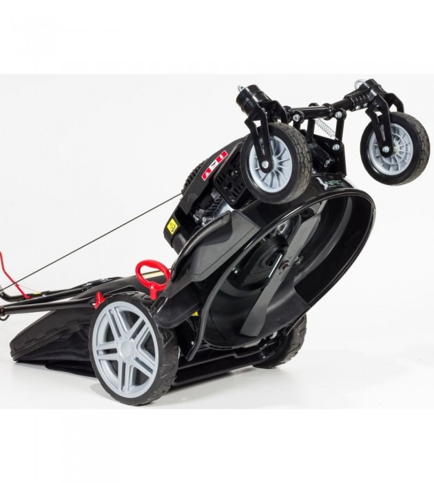 Duże łożyskowane tylne koła zmniejszają opory toczenia i ułatwiają prowadzenie kosiarki. Koła przednie również są łożyskowane.