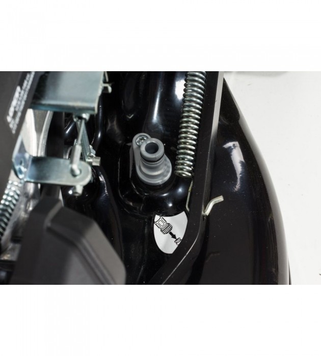 System mycia obudowy pozwala w prosty i szybki sposób umyć korpus kosiarki- wystarczy podłączyć wąż ogrodowy z wodą do króćca na obudowie oraz uruchomić kosiarkę.