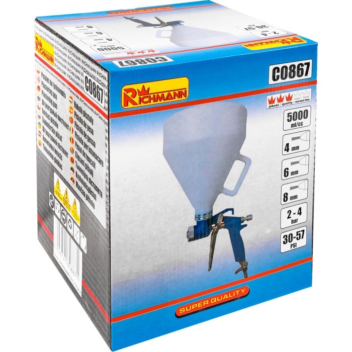 Pistolet do tynkowania ze zbiornikiem o pojemności 5000 ml.