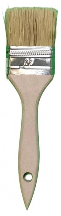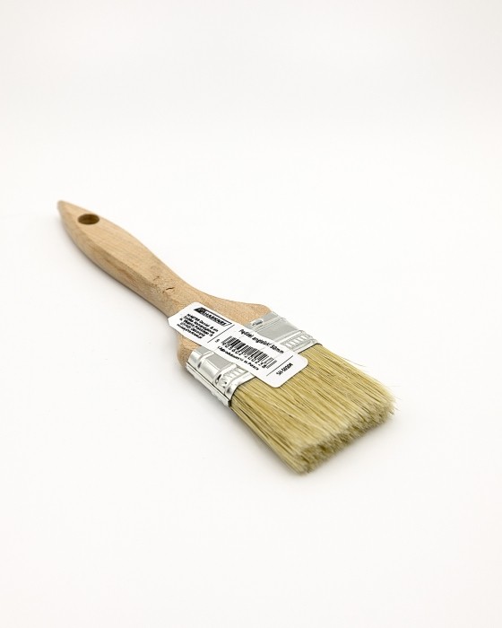 Włos wykonany z mieszanki szczeciny naturalnej i włókna x-shape, bukowy wyprofilowany trzonek zapewnia pewny chwyt, skuwka została wykonana ze stali niklowanej. Trzonek pędzla posiada otwór do zawieszenia na tablicy narzędziowej. Zalecany do wszystkich rodzajów farb i lakierów.