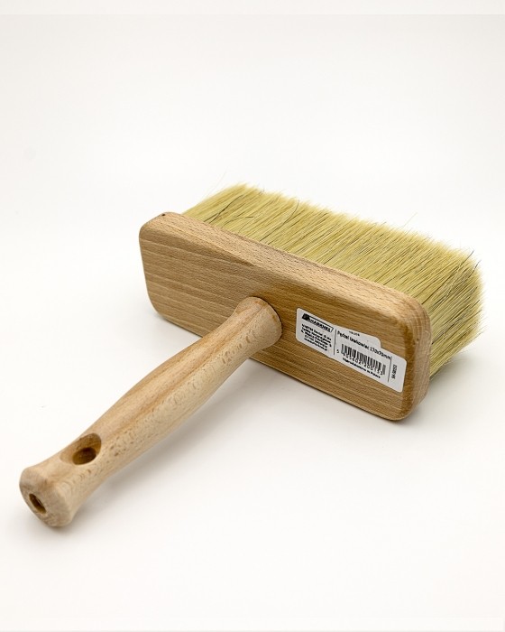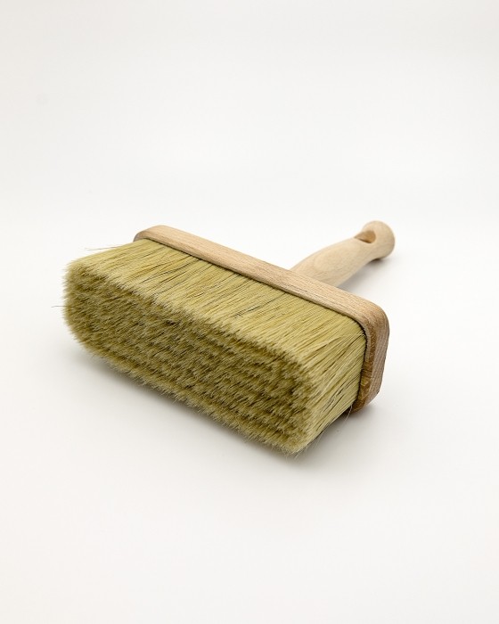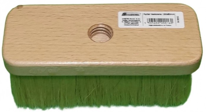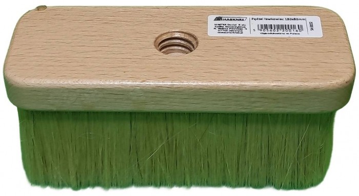 Włos wykonany z mieszanki szczeciny naturalnej i włókna x-shape, bukowy wyprofilowany trzonek zapewnia pewny chwyt. Trzonek pędzla posiada otwór do zawieszenia na tablicy narzędziowej oraz gwint w celu ułatwienia transportu narzędzia. Zalecany do wszys