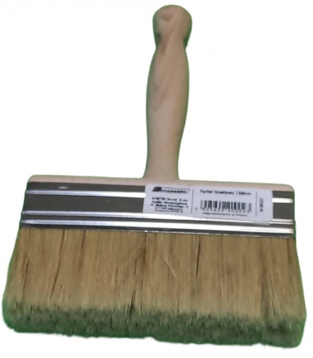 Włos wykonany z mieszanki szczeciny naturalnej i włókna x-shape, bukowy wyprofilowany trzonek zapewnia pewny chwyt, skuwka została wykonana ze stali niklowanej. Trzonek pędzla posiada otwór do zawieszenia na tablicy narzędziowej. Zalecany do wszystkich rodzajów farb i lakierów.
