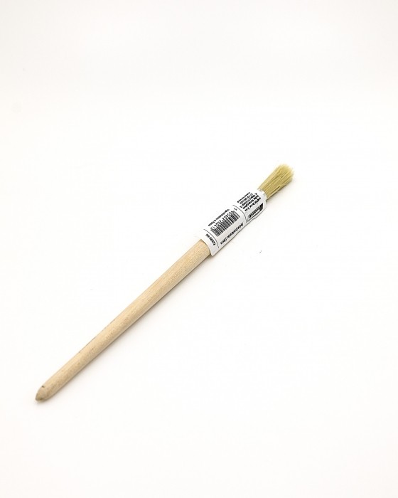 Włos wykonany z mieszanki szczeciny naturalnej i włókna x-shape, bukowy wyprofilowany trzonek zapewnia pewny chwyt, skuwka została wykonana ze stali niklowanej. Trzonek pędzla posiada otwór do zawieszenia na tablicy narzędziowej. Zalecany do wszystkich ro