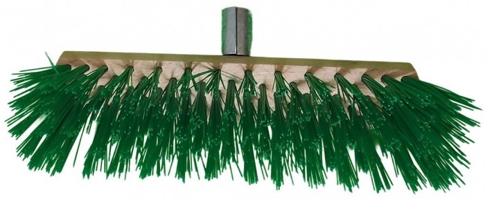 Włos wykonany z włókna PPN lub PET, baza szczotki wykonana z drewna bukowego,wyposażona w uchwyt metalowy ocynkowany do mocowania trzonka.