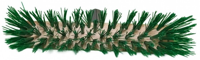 Włos wykonany z włókna PPN lub PET, baza szczotki wykonana z drewna bukowego,wyposażona w uchwyt metalowy ocynkowany do mocowania trzonka.