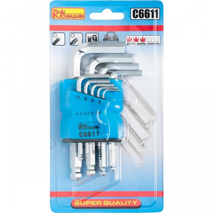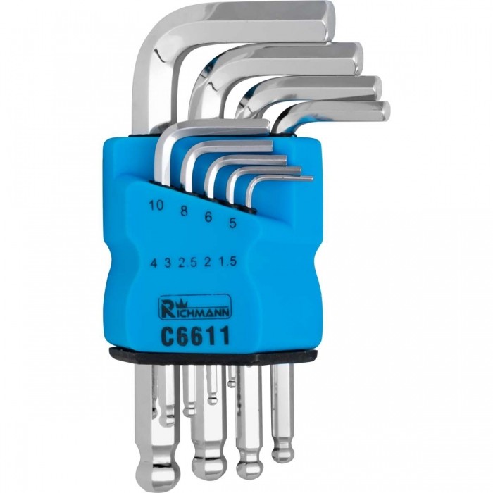 Zestaw zawiera klucze w rozmiarach od 1,5 do 10 mm.