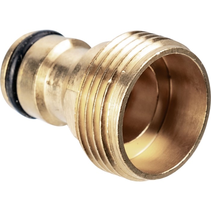 Mosiężny nypel do kranu z gwintem ¾' na wąż ½'.