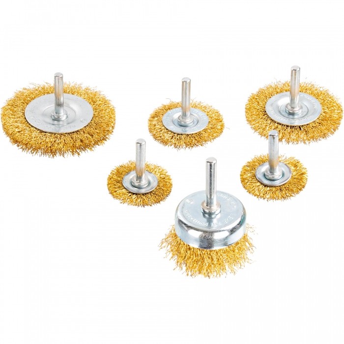 Zestaw 6 szt. szczotek drucianych mosiężnych do wiertarki.