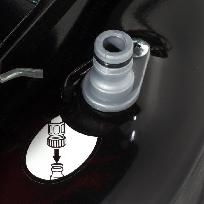 Kosiarka wyposażona jest w system mycia obudowy, który pozwala w prosty i szybki sposób umyć wewnętrzną obudowę kosiarki – wystarczy podłączyć wąż ogrodowy z wodą do szybkozłącza na obudowie oraz uruchomić kosiarkę.