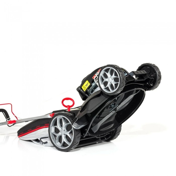 Ergonomiczne rączki ułatwiają sterowanie kosiarką, a ich miękkie wykończenie zapewnia komfort podczas koszenia. Pod rączką znajduje się funkcjonalny panel na napoje.