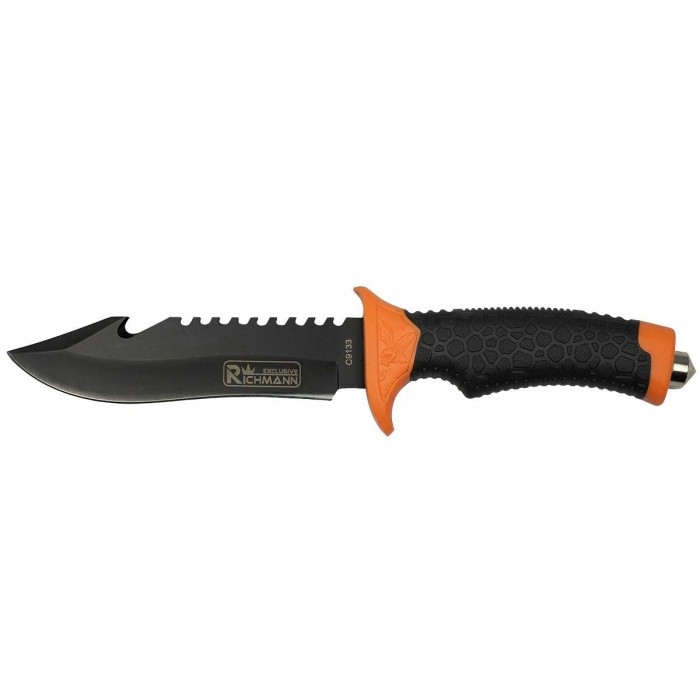 Wyposażony w dodatkowy element jakim jest umieszczony na końcu rękojeści wybijak do szyb.