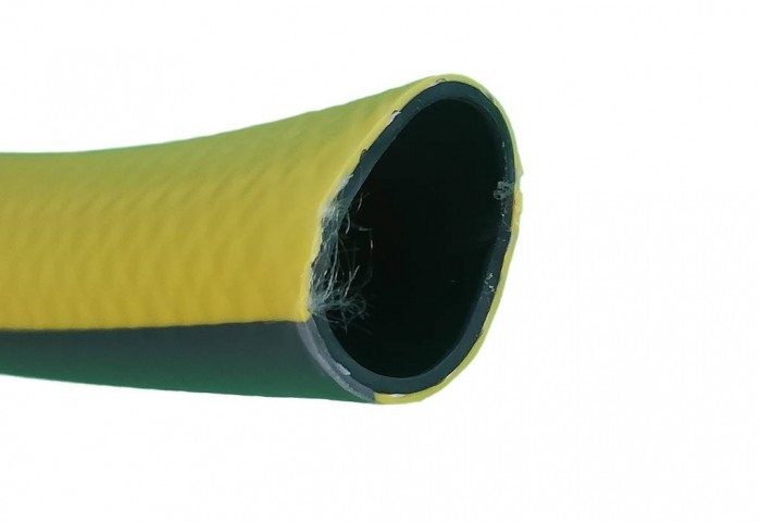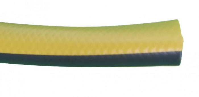 Wąż ogrodowy, 3 warstwowy – czarna warstwa, oplot krzyżowy z przędzy poliestrowej wysokiej jakości, oblewka kryjąca.