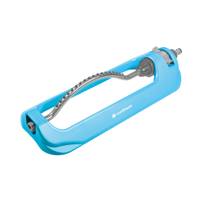 • zraszacz wahadłowy z wysokiej jakości tworzywa sztucznego i aluminium • posiada 18 dysz wylotowych • płynna sektorowa regulacja pola zraszania • powierzchnia zraszania do 240 m2