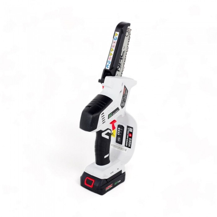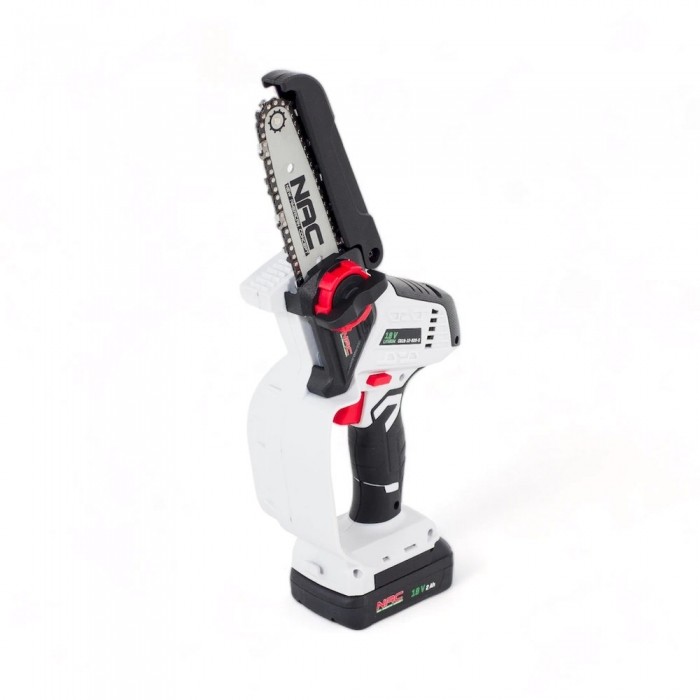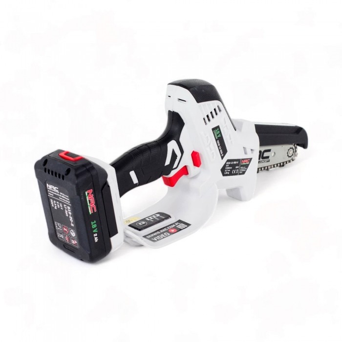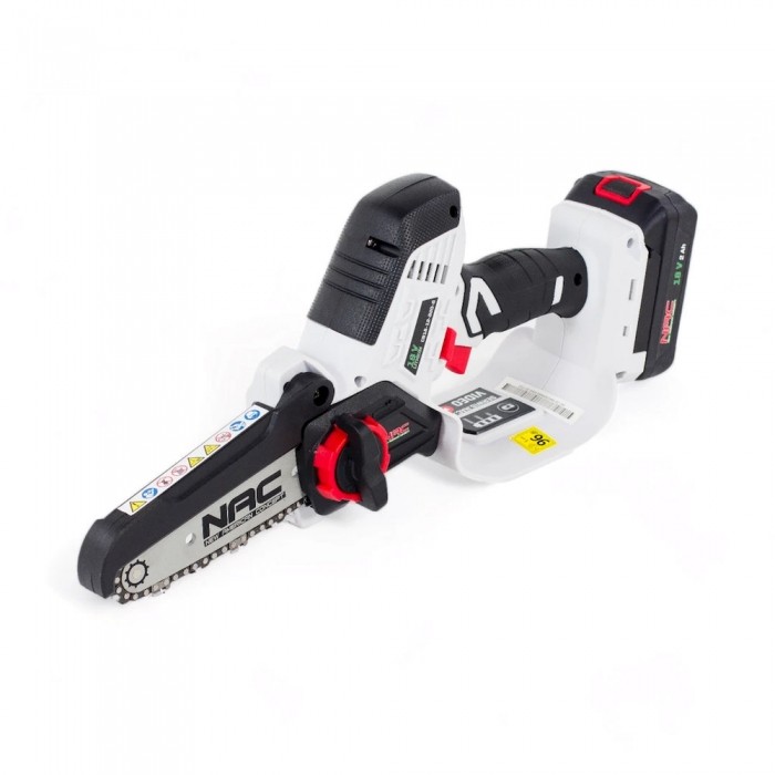 Pilarka łańcuchowa akumulatorowa NAC CB18-12-B20-S z prowadnicą NAC o długości 12,7 cm, wyposażona jest w wytrzymały silnik zasilany akumulatorem Li-Ion o napięciu 18 V o pojemności 2 Ah.