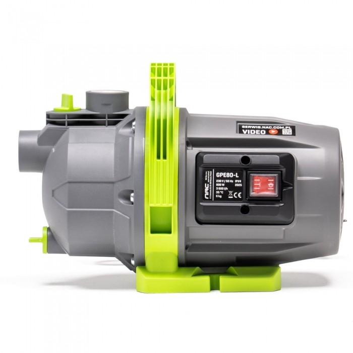 Pompa ogrodowa NAC GPE80-L wyposażona jest w wydajny silnik o mocy 800W. Przeznaczona jest do różnego rodzaju prac ogrodowych, do których potrzebna jest woda pod ciśnieniem.