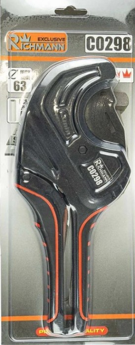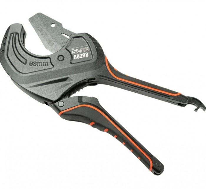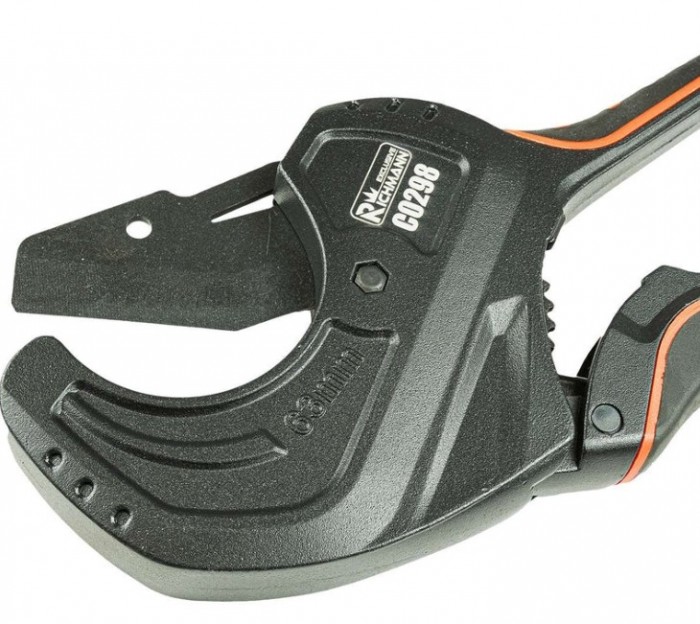 Precyzyjny obcinak do rur PCV, PP, PU i PE, o maksymalnej średnicy cięcia 63 mm. Wyposażony w mechanizm zapadkowy wspomagający cięcie, co zapewnia efektywność i wygodę podczas użytkowania. Ostrze wykonane jest z wysokowęglowej stali narzędziowej SK-5, która charakteryzuje się zwiększoną wytrzymałością, odpornością na pęknięcia, wykruszenia i stępienie. Dodatkowo, ostrze pokryte jest powłoką teflonową, co zwiększa jego trwałość. Zatrzask zabezpiecza przed przypadkowym otwarciem nożyc.