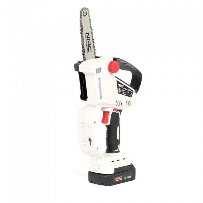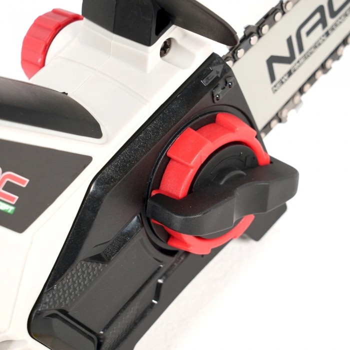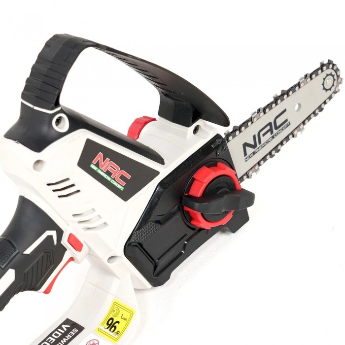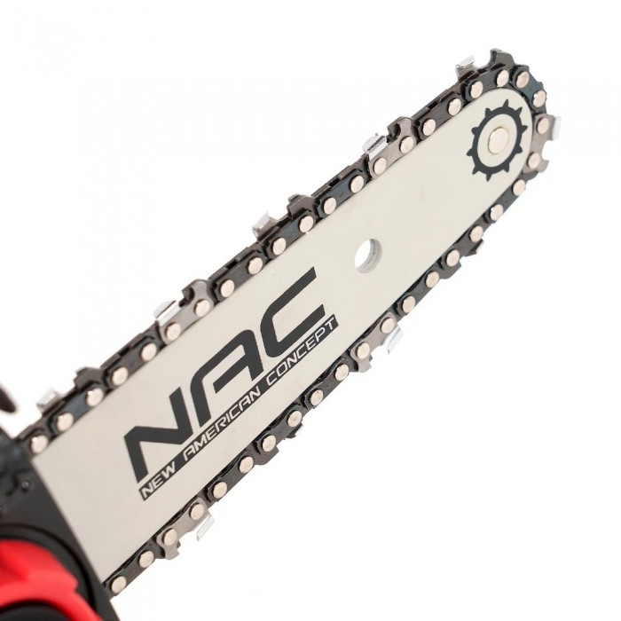 Pilarka łańcuchowa akumulatorowa NAC CB18-15-B20-S z prowadnicą NAC o długości 15,2 cm, wyposażona jest w wytrzymały silnik zasilany akumulatorem Li-Ion o napięciu 18 V o pojemności 2 Ah.