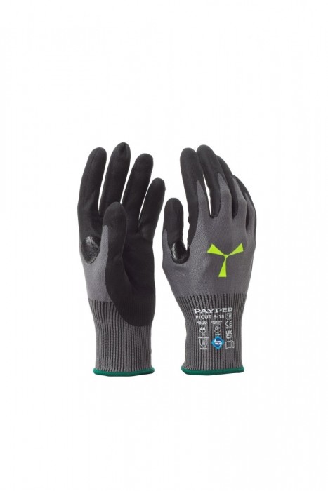 Rękawica odporna na przecięcia, przędza HPPE 18g, dzianinowy mankiet, nitrylowe wzmocnienie między kciukiem a palcem wskazującym, powłoka z mikropianki nitrylowej na wewnętrznej stronie dłoni, aby zapewnić doskonałą przyczepność. Cechy: wytrzymała, wygodna i elastyczna przędza – Mocne strony: komfort, elastyczność, odporność na przecięcie na poziomie F (TDM cut)/A6 (ANSI/ISEA). Zakres stosowania: obsługa i montaż ostrych przedmiotów, idealna w suchym środowisku lub przy umiarkowanej obecności olejów/węglowodorów. Długotrwała świeżość dzięki funkcjom higienizującym Sanitised®. Karton zawiera 6 pudełek ekspozycyjnych po 12 par, łącznie 72 pary. Każda para posiada kartonową zawieszkę z otworem. Kolor brzegu zmienia się w zależności od rozmiaru.