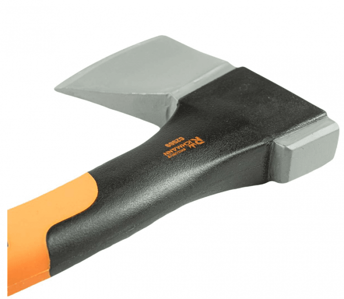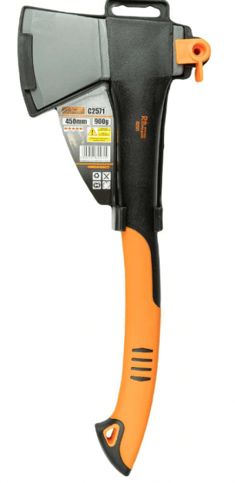 Siekiera z trzonkiem nylonowym. Głowica o masie 900g wykonana z wysokiej jakości stali zabezpieczona antykorozyjnie. Nylonowa rękojeść z dodatkowym ogumieniem zapewnia wygodny chwyt i jest odporna na działanie wilgoci. Rączka wyposażona w oczko do zawieszenia na haku.