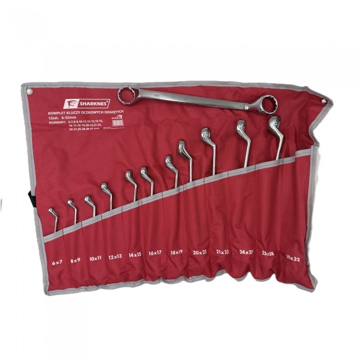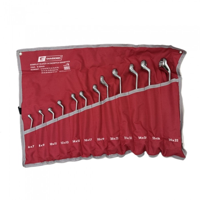 SHARKNES KOMPLET KLUCZY OCZKOWYCH ODGIĘTYCH 12 szt. (6–32 mm)