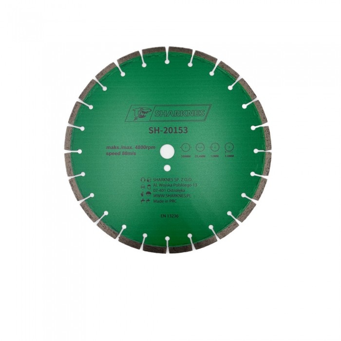 SHARKNES TARCZA DIAMENTOWA SEGMENTOWA 350x12x25,4 mm to wysokiej jakości tarcza stworzona do cięcia betonu oraz innych twardych materiałów budowlanych.