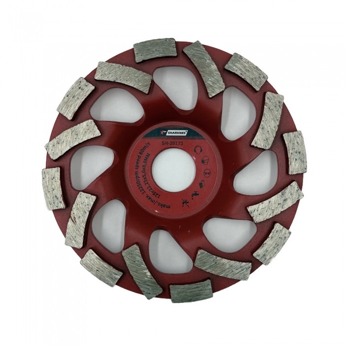 Tarcza diamentowa Sharknes 125 mm SUPERTURBO to profesjonalne narzędzie stworzone do intensywnego i precyzyjnego szlifowania twardych materiałów, takich jak beton, granit, kamień naturalny czy ceramika.