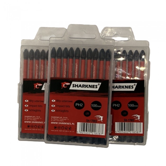 Profesjonalny bit udarowy Sharknes PH2 100 mm to wysokiej jakości końcówka wkrętakowa przeznaczona do intensywnej pracy z wkrętarkami udarowymi i wkrętarkami akumulatorowymi. Wykonana z trwałej, odpornej na przeciążenia stali, zapewnia doskonałą wytrzymałość na skręcanie i zużycie nawet w wymagających warunkach.