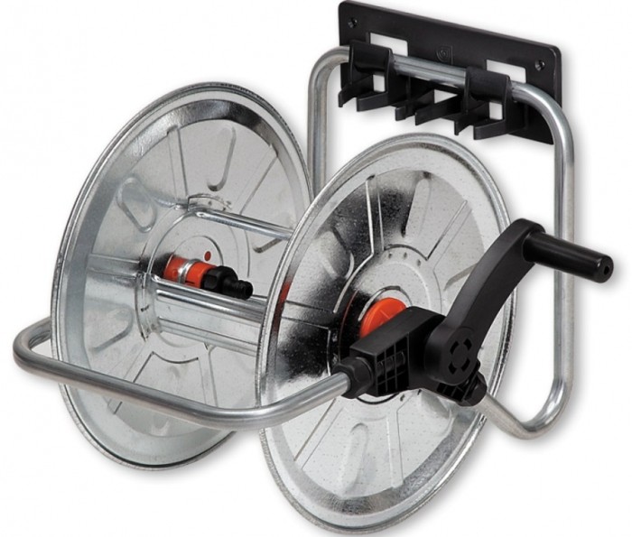 Bęben ścienny przenośny "ZINCATO" . Może on w wygodny sposób nawinąć do 50 metrów węża 1/2". Obrotowe podłączenie przyłącza zapobiega skręcaniu się węża przy rozwijaniu i zwijaniu.