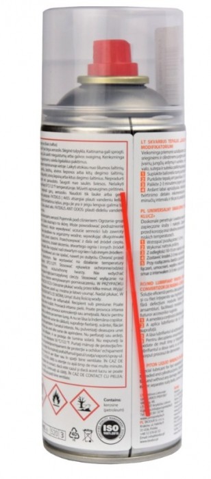Klucz w płynie - specjalny smar do szybkiego rozdzielania zapieczonych, zardzewiałych, zatkanych lub zamarzniętych połączeń gwintowanych i cylindrycznych. Rozdziela zapieczone, zardzewiałe śruby, nakrętki, łączniki, itp. w celu szybkiego demontażu bez uszkadzania połączeń gwintowanych, ułatwiając montaż i demontaż. Działa analogicznie jak WD40.